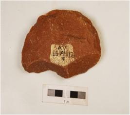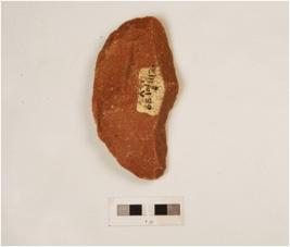 | Description / विवरण | A bifacial convex scraper on a side struck flake with flake scars on both side and irregular retouches on working edge. |