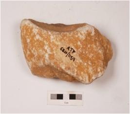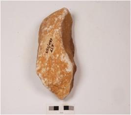 | Description / विवरण | A chopping tool made on quartzite pebble with flake scars on one end, retouched edge, cortex partly intact and made by employing soft hammer technique. |