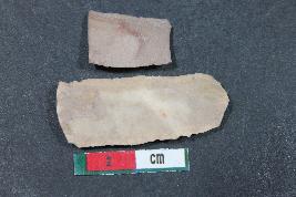 | Description / विवरण | Fragments of blades having one dorsal ridge in smaller one and two dorsal ridges with bulb of percussion in larger one. They have smooth surface. |