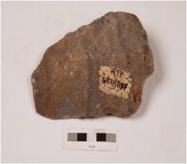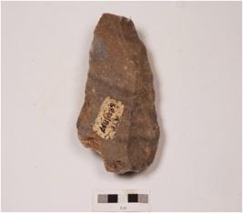 | Description / विवरण | An handaxe on end struck flake, dorsal side with a vertical ridge, side with diffused bulb, sharp cutting edges due to flaking by soft hammer technique on both sides. |