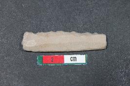 | Description / विवरण | A blade having two dorsal ridges with positive bulb of percussion. It has smooth surface. |