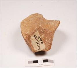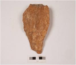 | Description / विवरण | A handaxe made on quartzite pebble with flake scars on both sides, irregularly retouched edges made by employing block on block technique. |