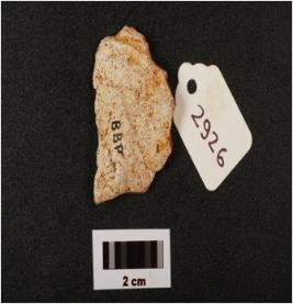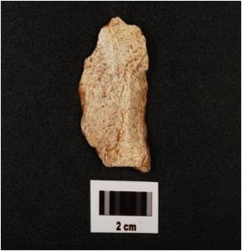 | Description / विवरण | Side scraper made on chert, platform visible on proximal end, retouches and use ware marks along the working edge, flake scars visible on dorsal surface, |