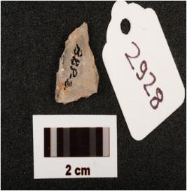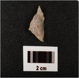 | Description / विवरण | Flake made on quartz, triangular in shape, pointed at both ends, platform and bulb absent, |