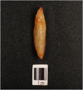 | Description / विवरण | Flake made on quartz, cortex visible on lateral side, pointed at both ends, bulb absent, |