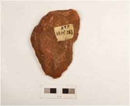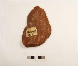 | Description / विवरण | A side scraper made on quartzite end struck flake prepared platform, prominent bulb on ventral regularly retouched edges and made by employing soft hammer technique. |