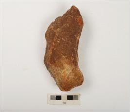 | Description / विवरण | A side scraper made on quartzite, on end struck flake with prominent bulb on dorsal soft hammer technique and irregular retouched on cutting edge. |