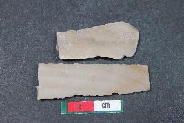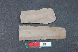 | Description / विवरण | A fragment of a blade having two dorsal ridges. It has smooth surface. |