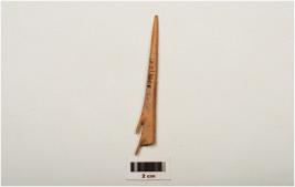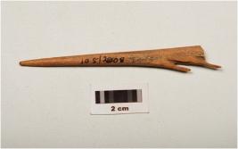 | Description / विवरण | Fragment of bone harpoon with two barb with pointed end one side and another side damaged end. |