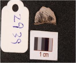 | Description / विवरण | A lunate on quartz crystal, one sharp straight cutting edge with retouches, other side convex and blunted by regular retouches. |