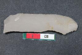 | Description / विवरण | A fragment of a blade having two dorsal ridges and bulb of percussion. It has smooth surface. |