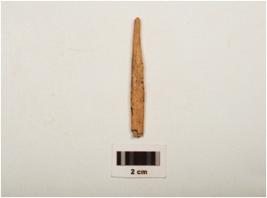 | Description / विवरण | A fragment of bone point, one end pointed, with rough surface and circular cross section. |