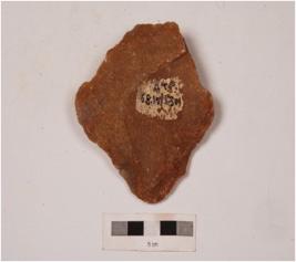 | Description / विवरण | A scraper on end struck flake, edges sharpened by soft hammer technique, flake scars on both dorsal and ventral side. |