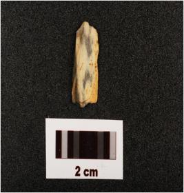| Description / विवरण | Parallel sided blade made on chert with sharp working edges, unprepared platform, positive blub visible on ventral surface, broken distal end, ridge on dorsal surface, use ware marks along the cutting edges, |