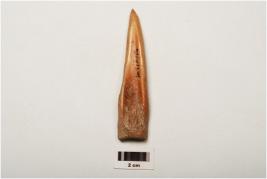 | Description / विवरण | A bone point one end pointed, another end broad, polished surface, with a natural groove. |