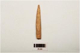 | Description / विवरण | A bone point, one end pointed another end damaged with rough surface and circular corss section. |