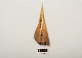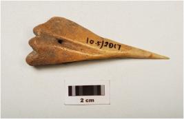 | Description / विवरण | A bone borer with pointed end and smoothly polished surface one side, another side rough and a natural groove on surface. |