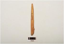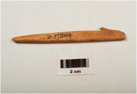 | Description / विवरण | A fragment of harpoon made by a long bone with one barb, one end pointed, another end damaged and polished surface. |