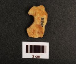 | Description / विवरण | Utilized flake made on quartz, positive bulb visible on ventral surface, hollow in one lateral side, |