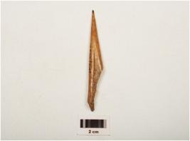 | Description / विवरण | A bone point one end sharp pointed, another ebd damaged, polished surface and a natural groove in a side. |