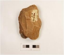 | Description / विवरण | A side scraper made on quartzite flake, flake scars on both sides, irregularly retouch edges and made by employing soft hammer technique. |