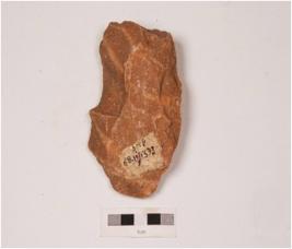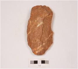 | Description / विवरण | A bifacial handaxe on pebble with alternative flakings by soft hammer technique, sharp cutting edges with irregular retouches on both sides. |