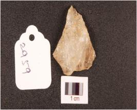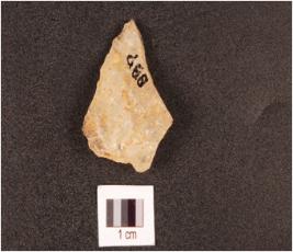| Description / विवरण | Point on side struck quartz flake, prepared platform on one side, diffused bulb on ventral side. |