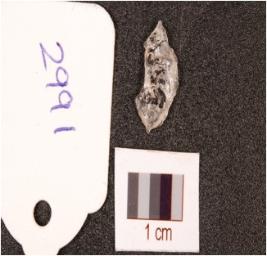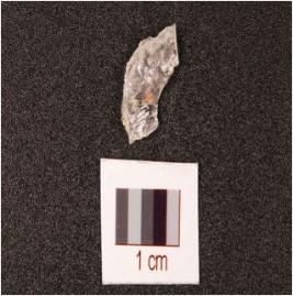 | Description / विवरण | A flake made on uneven quartz, surface irregular in shape. |