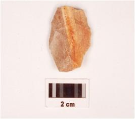 | Description / विवरण | A scraper made on chert, flakes marks on dorsal side, irregular retouching marks on edge, diffused bulb on ventral side. |
