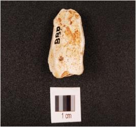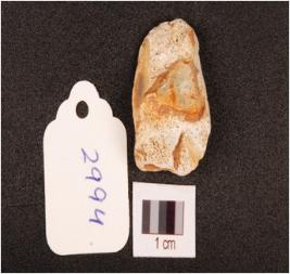 | Description / विवरण | A core made on chert, ridge on dorsal side, diffused bulb on proximal end, distal and proximal end are broken. |