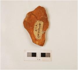 | Description / विवरण | A unifacial side scraper on a end struck flake with flake scars on dorsal, prepared platform, bulb on ventral, irregular retouches on working edge and cortex visible on one end. |