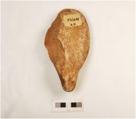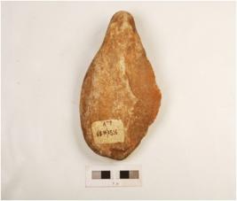 | Description / विवरण | A chopping tool made on quartzite pebble with flake scars on one side and cortex intact, made by employing soft hammer technique. |