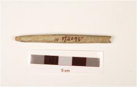 | Description / विवरण | A stone long point rectangular shaped with polished surface, square in section, pointed one end and other end broken. |