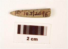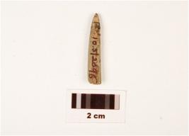 | Description / विवरण | A stone point with polished surface, pointed one end, other end broken, rectangular in section and grey in colour. |