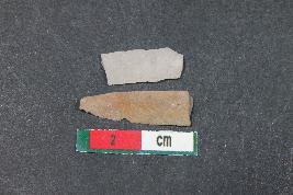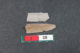| Description / विवरण | Fragments of blades having one dorsal ridge in larger one and two dorsal ridges with bulb of percussion in smaller one. They have smooth surface. |