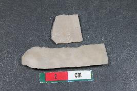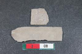| Description / विवरण | Fragments of blades having one dorsal ridge in larger one with bulb of percussion and two dorsal ridges in smaller one. They have smooth surface. |