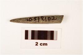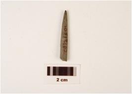 | Description / विवरण | A stone point with well polished surface, pointed one end. Other end broken and circular in section. Grey in colour. |