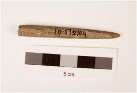 | Description / विवरण | A stone long point with polished surface, broken one end, other end pointed, grey in colour and circular in section. |