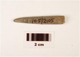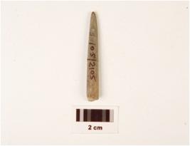 | Description / विवरण | A stone long point with polished surface, broken one end, other end pointed, grey in colour and circular in section. |
