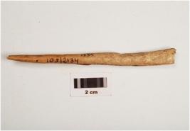 | Description / विवरण | A bone point, partly polished and uneven surface, one pointed end, partly broken from both ends and brown in colour. |