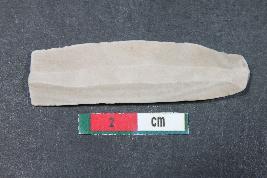 | Description / विवरण | Blade with two dorsal ridges with a bulb of percussion on the ventral side having smooth surface. |