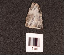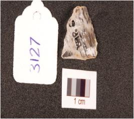 | Description / विवरण | A flake made on crystal, flake marks on dorsal side, irregular retouching marks on edge, diffused bulb on ventral side. |