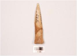 | Description / विवरण | Arrow head with a pointed tip and a broad end. Polished surface and cut marks visible on surface. |