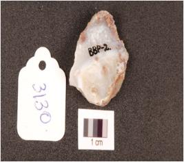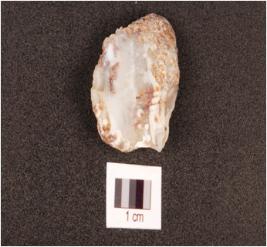 | Description / विवरण | A flake made on agate, irregular edge, flake marks on dorsal side, prepared platform is visible. |