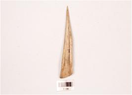 | Description / विवरण | Bone point with a polished surface, pointed tip, broad at other end, one side hollow and cut marks on surface visible. |