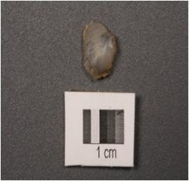 | Description / विवरण | Chalcedony fragment of parallel sided blade with prominent bulb, used wear mark on cutting edge. |