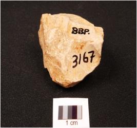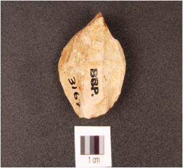 | Description / विवरण | A chert core with prepared platform and four blade scars on the surface. |