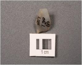 | Description / विवरण | Chalcedony flake core, flake scars on surface. |