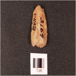 | Description / विवरण | A quartz blade with triangular cross section, a mid-ridge on dorsal side, prepared platform, prominent bulb on ventral side, use-wear marks along the cutting edges and distal end broken. |