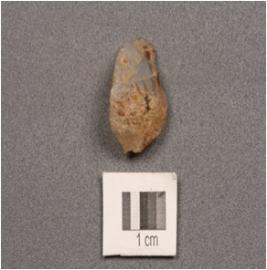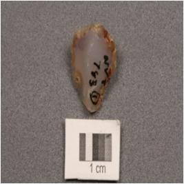 | Description / विवरण | Chalcedony flake with a prominent ridge, uneven surface. |